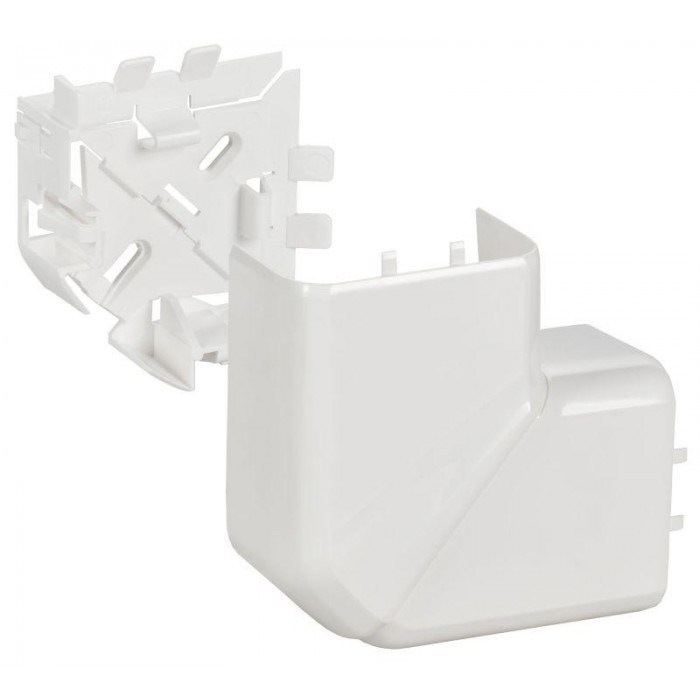 Плоский угол предназначен для соединения двух кабель-каналов одинакового сечения под плоским углом 85–95°. Позволяет избежать разрезания кабель-канала под острым углом, обеспечивает степень защиты IP40, улучшает внешний вид и скрывает место разреза. Угол защёлкивается на корпус кабель-канала. Допускается установка на кабель-каналы с разделительными/несущими перегородками или без них. Цвет: белый