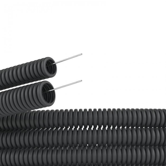 Труба гофрированная ПНД гибкая легкая d40мм с протяжкой черн. (уп.20м) DKC 71740