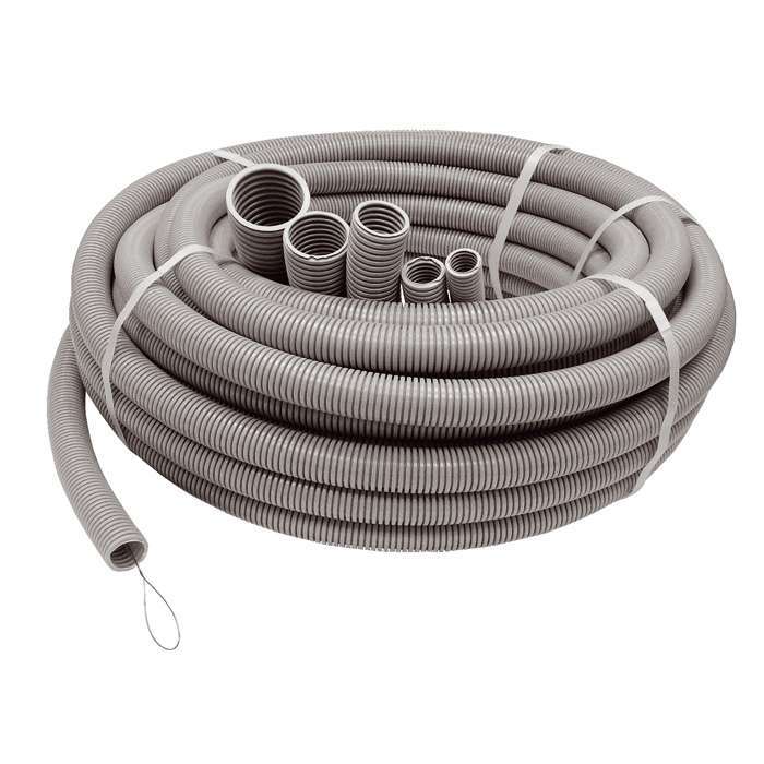 Труба гофрированная ПВХ легкая d25мм с протяжкой сер. (уп.20м) Ruvinil 12501(20)