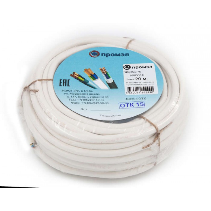 Провод ПВС 2х0.75 Б (бухта 20м) (шт) ПромЭл 13321460