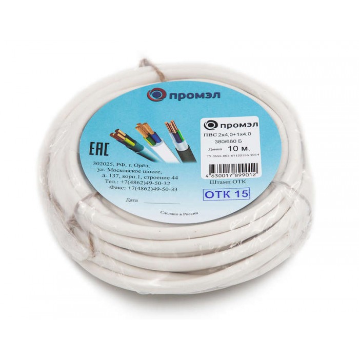 Провод ПВС 3х4 (2х4+1х4) 380В Б (бухта 10м) (шт) ПромЭл 13321690 1332169...