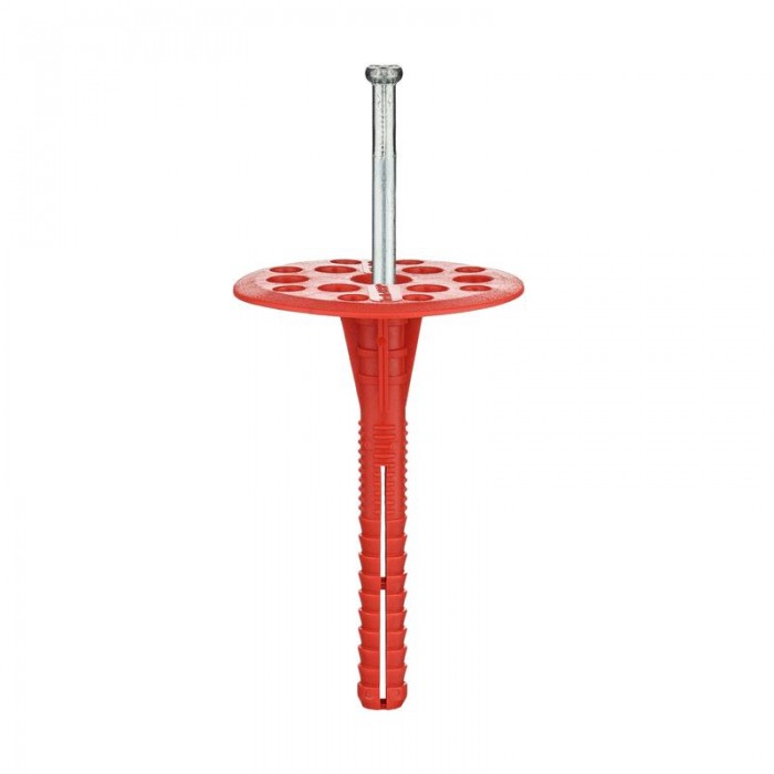 Тарельчатый дюбель IZM состоит из следующих элементов: дюбель с двухсегментной распорной зоной и увеличенной прижимной шайбой диаметром 60 мм, и распорный элемент – гвоздь. Дюбель выполнен из полипропилена, гвоздь – из у...