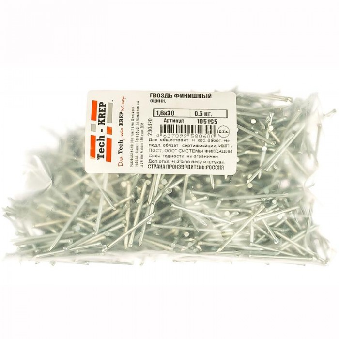 Гвоздь финишный 1.6х30 оцинк. (уп.0.5кг) Tech-Krep/Zitar 105195