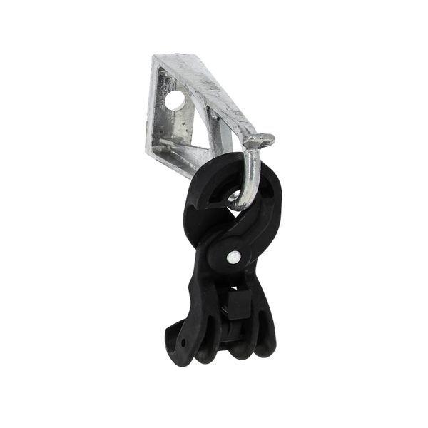 Крепеж фиксируется на балке сверху и предназначен для крепления кабелей или труб при помощи хомута. ..