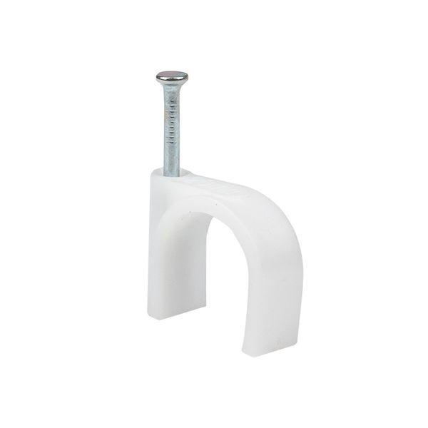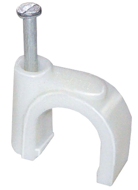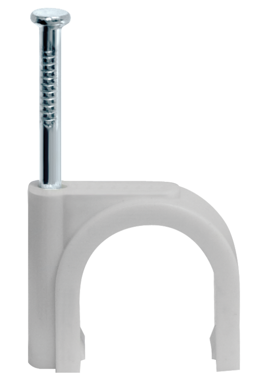 Круглый крепеж 6 мм с гвоздем предназначен для фиксации круглого кабеля к деревянной поверхности. Та..