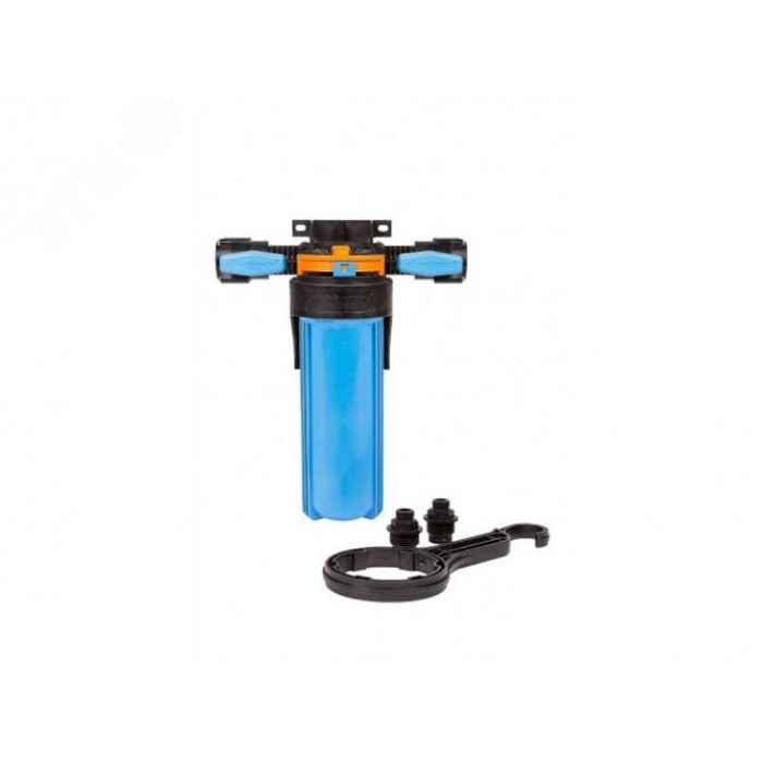Корпус для картриджного фильтра предназначен для размещения в нём картриджей или фильтрующей засыпки для дальнейшей очистки холодной воды в бытовых условиях. Типоразмер колбы - SlimLine 10. Поворот коллектора на 180град позволяет установить корпус фильтра в магистраль, с направлением движения воды, как слева направо, так и справа налево. Магистральную трубу можно разместить вплотную к стене. Кронштейн является одним целым с крышкой корпуса фильтра. В корпусе предусмотрены специальные технологические отверстия (пробки) для сброса избыточного давления и слива остаточной воды. В комплект поставки входит ключ, с помощью которого можно отвернуть колбу от крышки, а также уплотнительная вставка белого цвета для картриджных элементов без сердечника. На концах коллектора встроены шаровые краны.