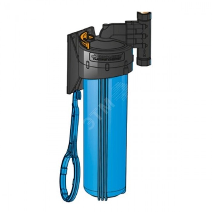 Корпус для картриджного фильтра предназначен для размещения в нём картриджей или фильтрующей засыпкидля дальнейшей очистки холодной воды в бытовых условиях. Изготавливается из армлена, прочного материала устойчивого к циклическим нагрузкам и не пропускающего ультрафиолетовые лучи сквозь корпус. Типоразмер колбы - Big Blue 20”. Данная модель предназначена для установки на вертикальной трубопровод.