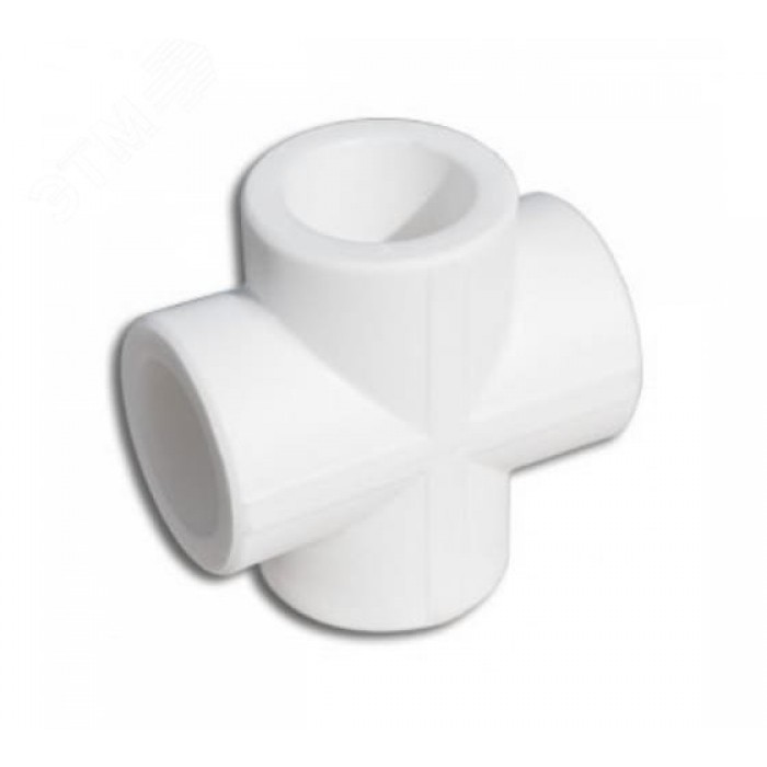 Полипропиленовый фитинг. Представляет собой соединительную деталь для соединения четырех труб из полипропилена одного диаметра в одной плоскости. Производится методом литья под давлением.