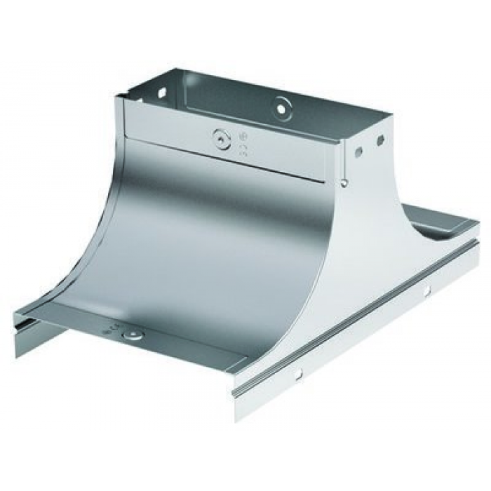 При построении кабельной трассы чаще всего требуется организовать ее изгибы и ответвления в горизонтальной и/или вертикальной плоскости. Для этого в системе "S5 Combitech" применяются аксессуары. Крышка-ответвитель TS используется, если нужно организовать сложное ответвление кабельной трассы. Она имеет Т-образную форму. При ответвлении обеспечивается плавный изгиб, что предохраняет кабель от повреждения. Ширина лотка в горизонтальном направлении – 400 мм, в вертикальном – 400 мм, высота боковой стенки – 100 мм. Применение комплектных аксессуаров облегчает расчет числа необходимых элементов для монтажа – в комплект уже входят соединительные пластины и детали крепежа. Аксессуар выполнен в специальном исполнении "Горячий цинк", которое отличает повышенная устойчивость к коррозии. Горячеоцинкованное изделие защищено от образования ржавчины на срок 30-50 лет (в зависимости от условий, в которых эксплуатируется изделие).