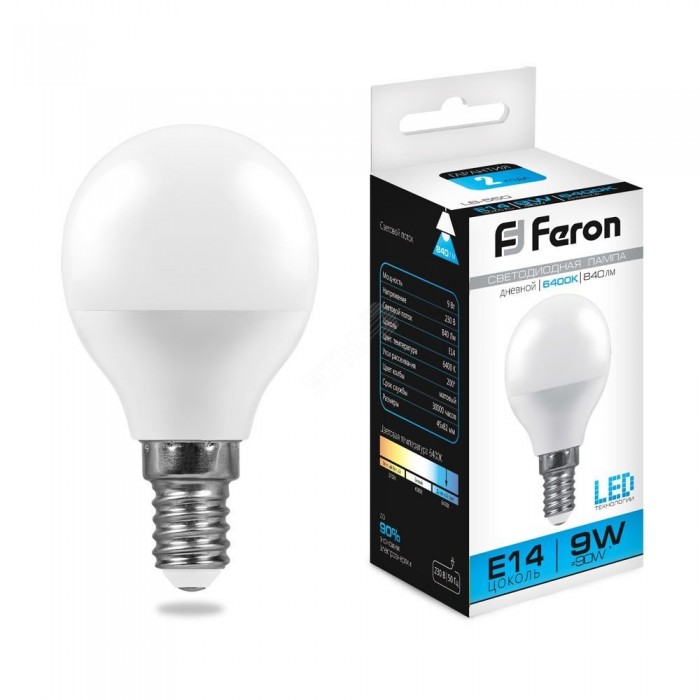 Лампа светодиодная LED 9вт Е14 дневной матовый шар
