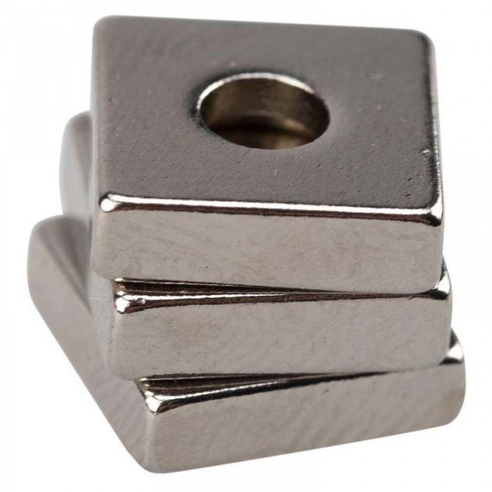 Постоянный редкоземельный неодимовый магнит-прямоугольник с зенковкой предназначен для создания сильного магнитного поля. Используется для фиксации и зажима металлических предметов: крепления жалюзи, баннера или автомобильного кузова, создания застежки на портфелях, кейсах, чемоданах, сумках. Находит множество применений в быту и промышленности. Магнит изготовлен из сплава N42, который хорошо подходит для применения в быту и промышленности. Практически не подвержен размагничиванию. Благодаря зенковке магнит легко крепится саморезом или шурупом к поверхностям из различных материалов. Из-за особенностей структуры сплав N42 достаточно хрупкий. Чтобы повысить прочность магнита, его дополнительно прессуют и покрывают никелем. Покрытие: никель (Ni). Рабочая температура: -60...+80 °С. Вес: 5 г.