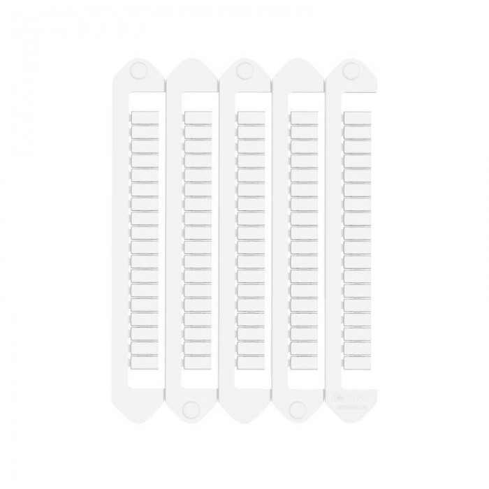 Маркировка клемм компании ДКС для печати на принтере MarkTC и MarkTC Plus. Материал – АБС-ПК. Класс горючести по UL94 - V0. Температура эксплуатации от –40 до +80 °С. Цвет – белый. Фиксируется на клеммах защелкиванием. Тег размером 5х10 мм. На пластине 90 тегов. В упаковке 10 пластин - 900 тегов.