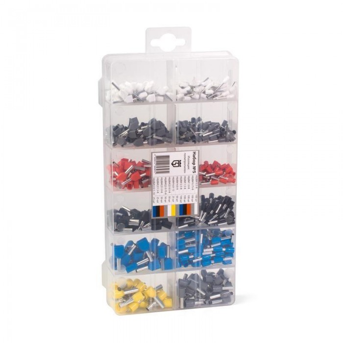 • Коробка выполнена из прочного пластика • Прозрачная коробка позволяет осуществлять визуальный контроль содержимого • Цветовая маркировка манжет втулочных наконечников выполнена по DIN 46228, часть 4 • Одинарные и двойн...