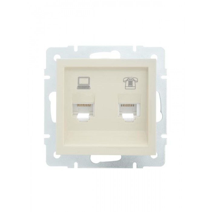 Розетка компьютерная + телефонная 1-м СП Vesna механизм крем. LEZARD 742-0388-143