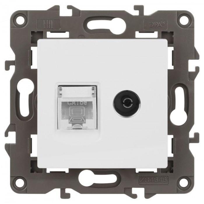 Розетка телевизионная + информационная RJ45+TV серии Эра Elegance цвет белый матовый 14-3110-01М. Рамки приобретаются отдельно....