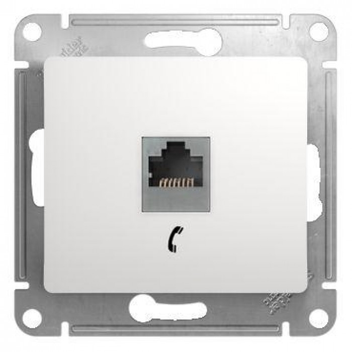 Механизм Systeme Electric (ранее Schneider Electric) серии Glossa (цвет белый) розетки телефонной с разъёмом RJ11 предназначен для удобного и быстрого подключения вашего телефона, модема или факса к телефонной сети. - Выполнен из материала PС+ASA, стойкого к УФ-излучению и появлению царапин.