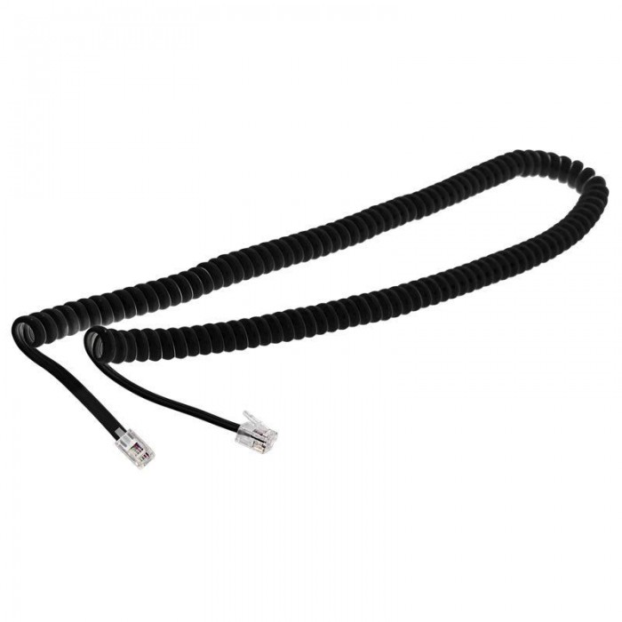 Шнур предназначен для подключения телефонных трубок к телефонным аппаратам. Применяется в радиостанциях, медицинской технике и в других областях, где необходим шнур с переменной рабочей длиной. Изделие представляет собой витой кабель, на концах которого располагаются опрессованные разъемы RJ-10 (4P4C). Контакты разъемов покрыты слоем золота по технологии вакуумного напыления, что обеспечивает улучшенную пропускную способность сигнала. Жилы и общая оболочка изготовлены из ПВХ. Материал отличается износостойкостью и долгим сроком службы. Двойная изоляция надежно защищает провод от механических повреждений. Витая конструкция кабеля обеспечивает удобное изменение длины провода, а также предотвращает перегибы и спутывание как в развернутом, так и в собранном виде. Рабочая температура шнура –20...+50 ?. Длина провода составляет 4 м, цвет – черный.
