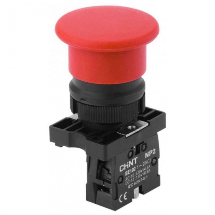 Кнопка управления "Грибок" NP2-EC42 d40мм 1НЗ IP40 с самовозвратом без подсветки красн. (R) CHINT 573896