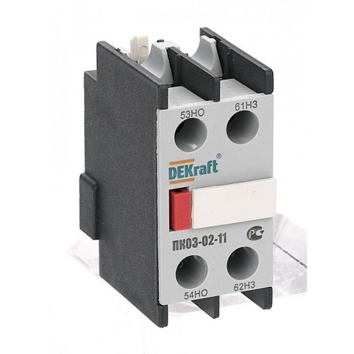 Приставка контактная серии ПК-03-02 для контакторов КМ-103 Dekraft; кол-во контактов - 1НО+1НЗ; ном.ток 10 А; ном.напряжение до 690 В; установка с лицевой стороны; степень защиты IP20. Приставки контактные предназначены ...
