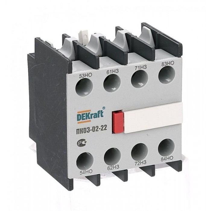 Приставка контактная серии ПК-03-02 для контакторов КМ-103 Dekraft; кол-во контактов - 2НО+2НЗ; ном.ток 10 А; ном.напряжение до 690 В; установка с лицевой стороны; степень защиты IP20. Приставки контактные предназначены ...