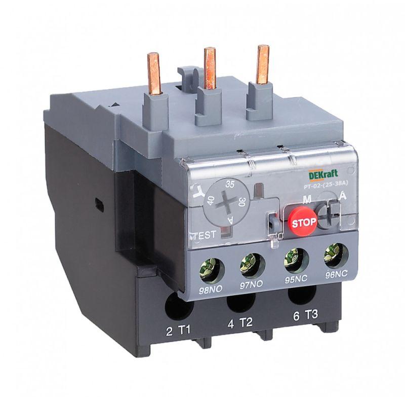 Тепловое реле перегрузки серии РТ-02 Dekraft; предназначено для применения с контакторами КМ-102 на ..