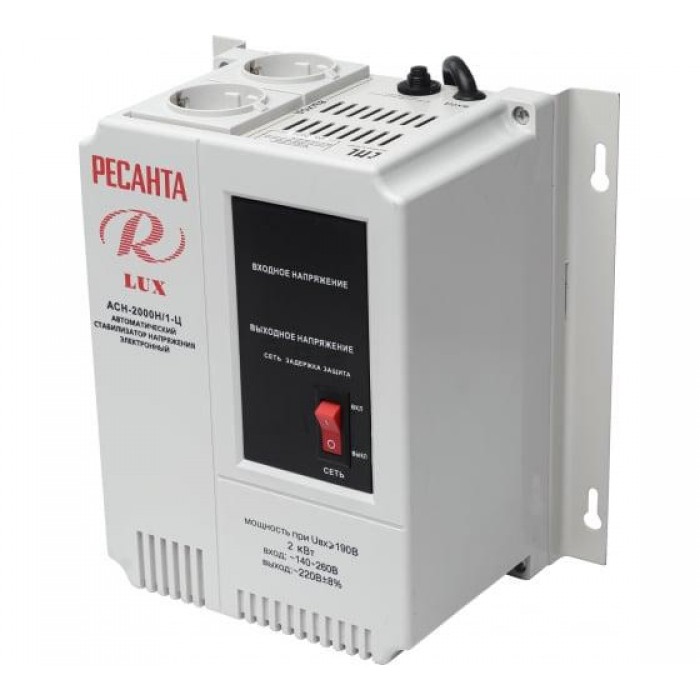Стабилизатор напряжения АСН-2000 Н/1-Ц Lux 1ф 2кВт IP20 настен. релейный с двумя розетками Ресанта 63/6/15