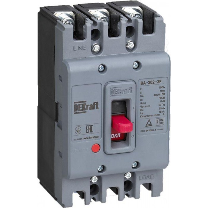 Выключатель автоматический 3п 100А 25кА ВА-302 DEKraft 22749DEK