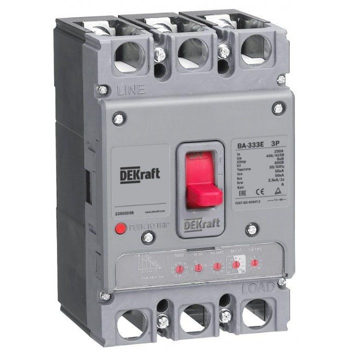 Выключатель автоматический 3п 250А 50кА ВА-333E электрон. расцеп. DEKraft 22502DEK