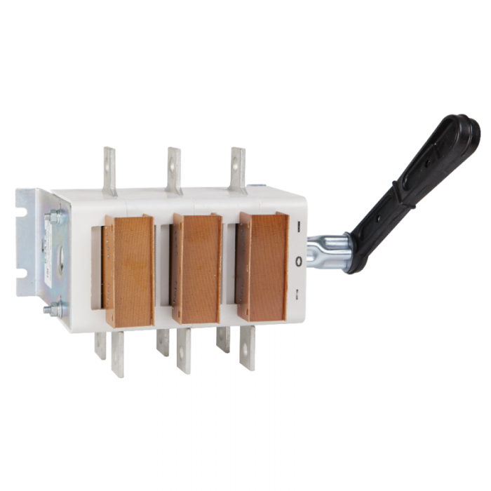 Выключатель-разъединитель 3 полюсный на номинальный ток 630 А, в котором установлена съемная рукоятка.