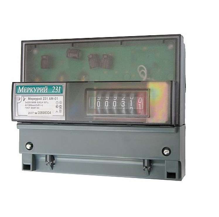 Счетчик Меркурий 231 AM-01 3ф 5-60А класс точн. 1.0 1 тариф. импульс. вых. на DIN-рейку мех. ОУ Инко..