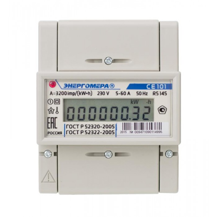 Счетчик CE101 R5 145 1ф 5-60А класс точн. 1.0 1 тариф. Энергомера 101001003009471