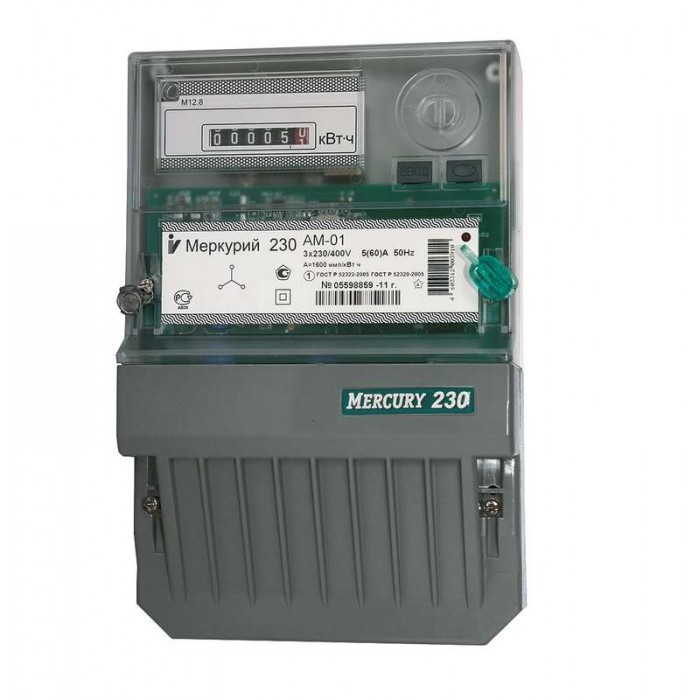 Счетчик Меркурий 230 AM-01 3ф 5-60А класс точн. 1.0 1 тариф. импульс. вых. на панель мех. ОУ Инкотекс 00000032428 35789