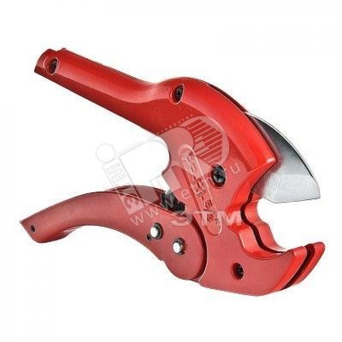 Ножницы с пружинным механизмом открывания. Обеспечивают разрезание под прямым углом пластиковых и металлопластиковых (металлополимерных) труб диаметром до 40 мм. Конструкция инструмента включает нож из нержавеющей стали, храповой механизм, подпружиненную защелку, фиксирующую ножницы в закрытом положении. Внутри рукоятки расположена пружина, поднимающая нож.