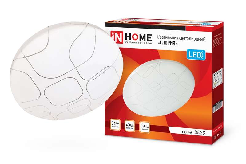 Светодиодный светильник ГЛОРИЯ серии DECO от ТМ In Home, изготовленный в белом цвете с простыми чист..