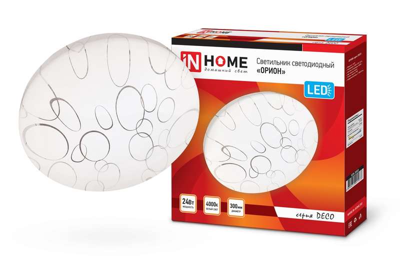 Светодиодный светильник круглой формы ОРИОН серии DECO от ТМ In Home в классическом белом корпусе с ..