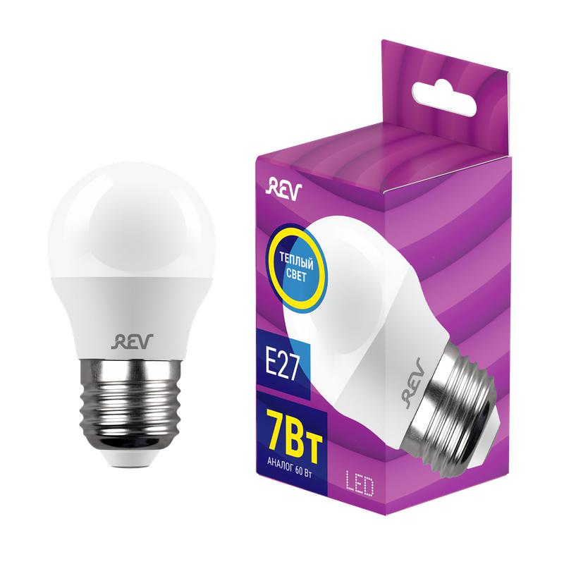 Лампа светодиодная G45 7Вт шар 2700К тепл. бел. E27 600лм 180-240В REV 32342 6 423995..