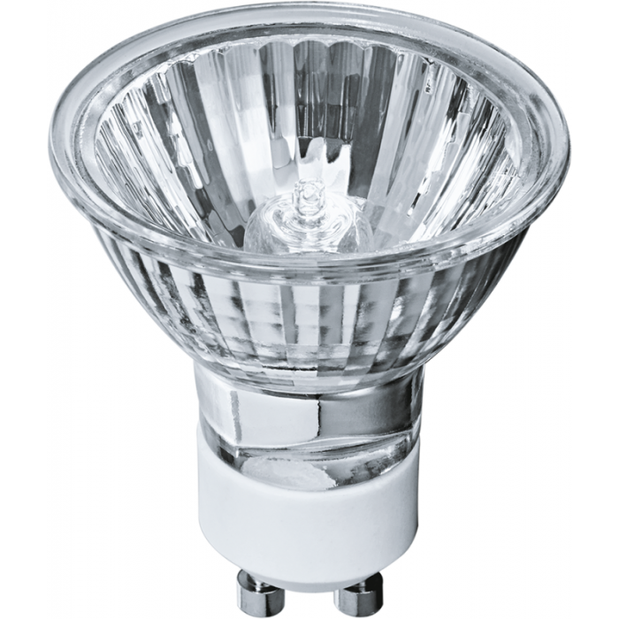 • НАЗНАЧЕНИЕ Используются для местного освещения. • ОБЛАСТЬ ПРИМЕНЕНИЯ Рефлекторные галогенные лампы применяются при освещении помещений во встраиваемых потолочных светильниках или специальных люстрах, а также часто применяются при декоративной подсветке витрин или интерьера. Такое применение связано с высокой степенью цветопередачи (Ra 99—100), компактностью и яркостью самих ламп. • ПРИНЦИП ДЕЙСТВИЯ Это лампы накаливания, спираль которых работает в среде инертного газа с добавлением паров галогенов, что позволяет ей излучать на 30% больше света по сравнению с обычными лампами накаливания, а также увеличить срок службы до 2000 часов. • ДОПОЛНИТЕЛЬНЫЕ ПРИНАДЛЕЖНОСТИ ИЛИ АКСЕССУАРЫ