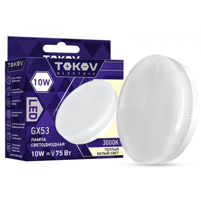 Лампа светодиодная 10Вт Tablet 3000К GX53 176-264В TOKOV ELECTRIC TKE-GX53-10-3K 1660411