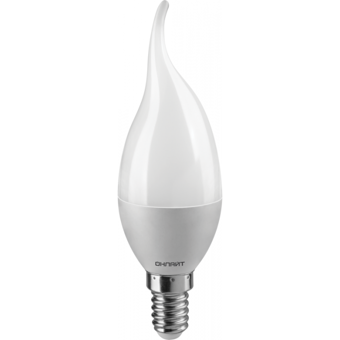 Лампа светодиодная 71 621 OLL-FC37-6-230-4K-E14-FR ОНЛАЙТ 4670004716212 – лампа с колбой вида "свеча", белого света, длиной 130 мм, с цоколем Е14, мощностью 6 Вт. Цветовая температура 4000 К.