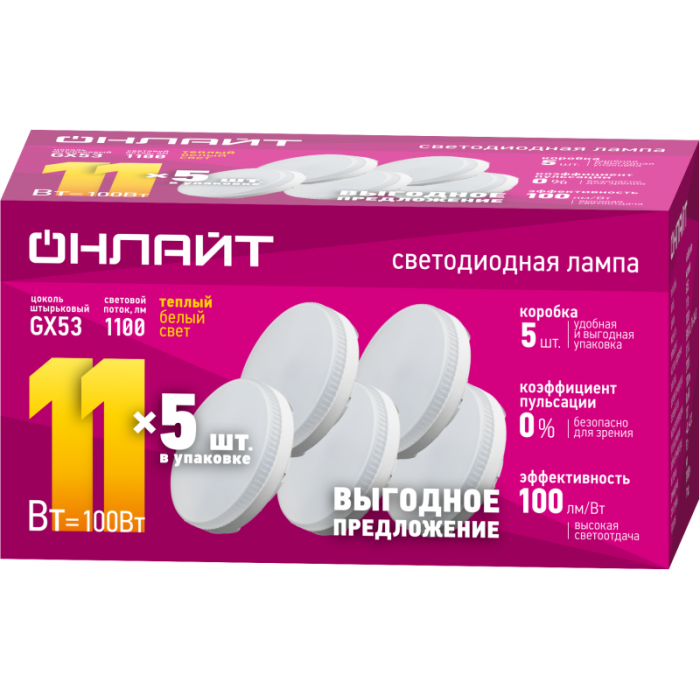 Лампа светодиодная 90 612 OLL-GX53-11-230-2.7K-PACK5 ОНЛАЙТ 90612 1924354