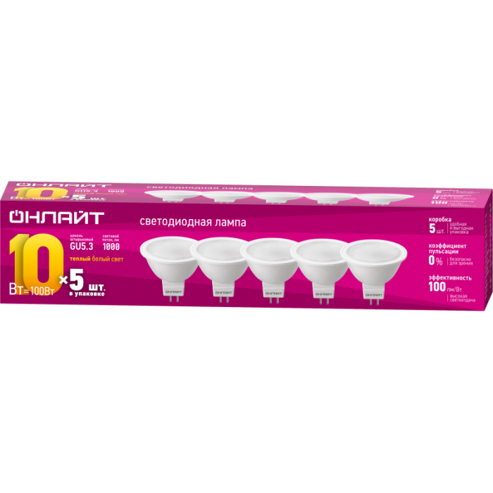 Лампа светодиодная 90 615 ОLL-MR16-10-230-3K-GU5.3-PACK5 ОНЛАЙТ 90615 1924357