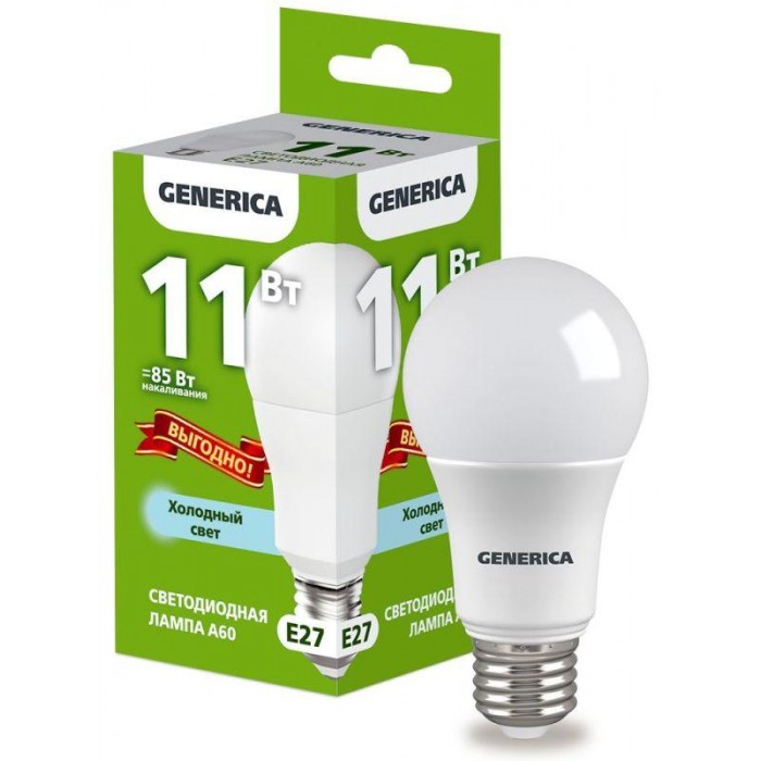 Лампа светодиодная A60 11Вт грушевидная 6500К E27 230В промо GENERICA LL-A60-11-230-65-E27-G