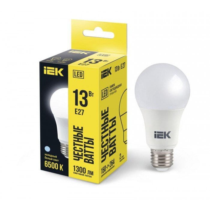 Лампа светодиодная A60 13Вт грушевидная 230В 6500К E27 IEK LLE-A60-13-230-65-E27