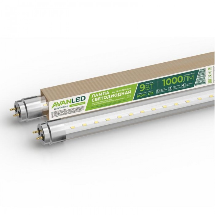 Лампа светодиодная AL T8-9-865-600 9Вт прозрачная 6500К холод. бел. G13 1000лм 195-265В (пр-во РФ) AVANLED 11206651