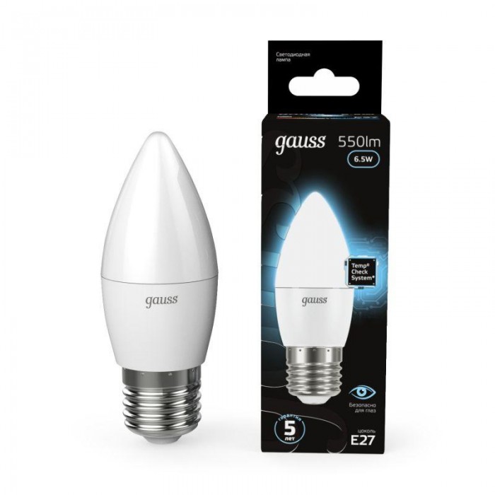 Лампа светодиодная Black 6.5Вт свеча 4100К нейтр. бел. E27 550лм GAUSS 103102207