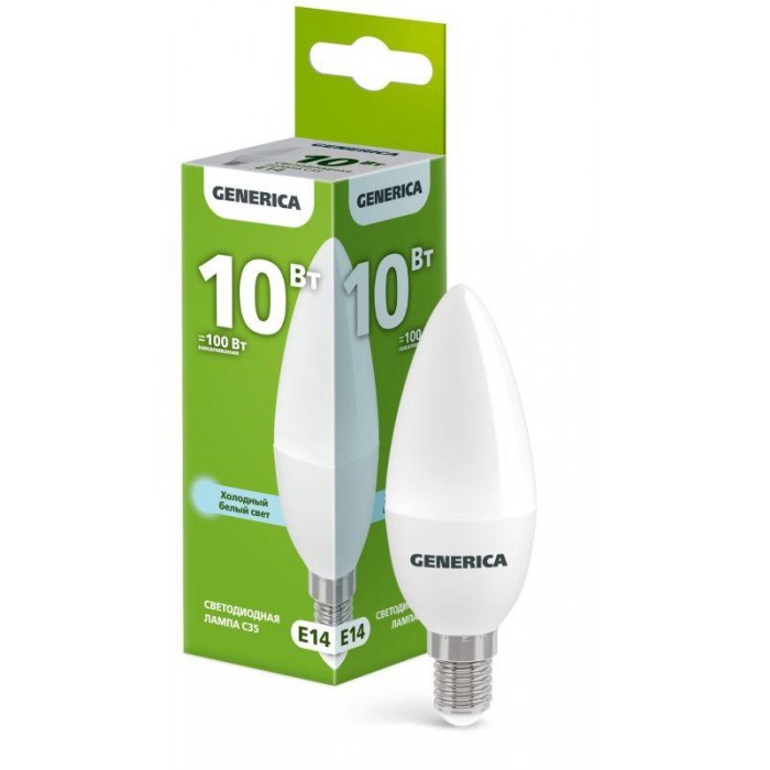 Лампа светодиодная C35 10Вт свеча 6500К E14 230В GENERICA LL-C35-10-230-65-E14-G