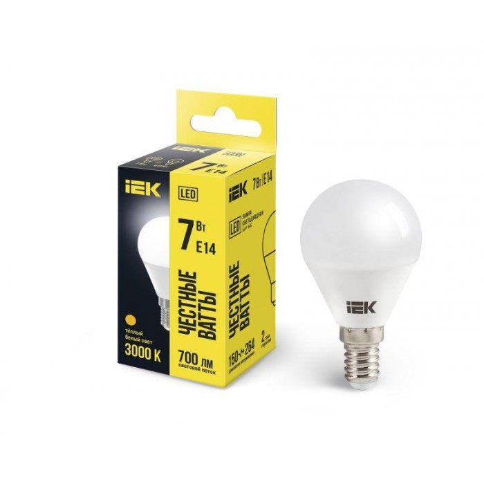 Лампа светодиодная G45 7Вт шар 3000К тепл. бел. E14 630лм 230-240В IEK LLE-G45-7-230-30-E14