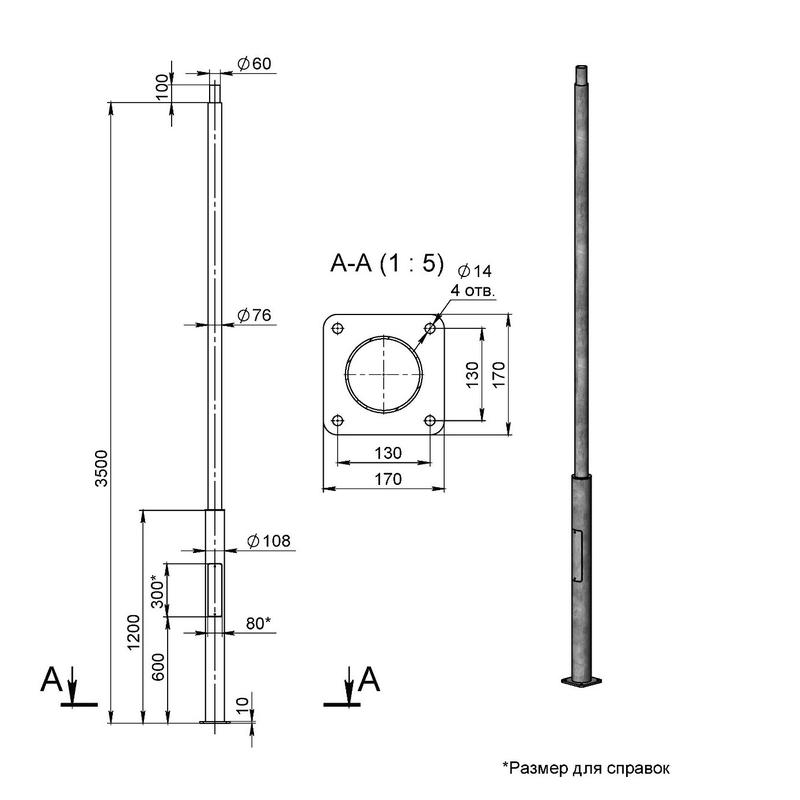 Опора ОП1ф-3.5-108/76/т60-(К170-130-4х14)-по 9005 муар Пересвет В00007135 490700..