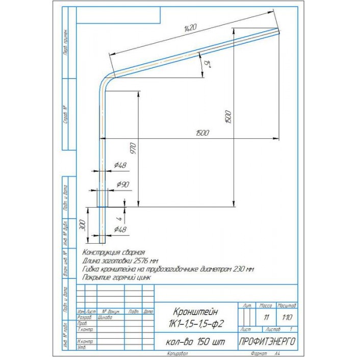 Кронштейн однорожковый "Стандарт" под UMECON 1.К1-1.5-1.5-ф2 D48мм гор. цинк