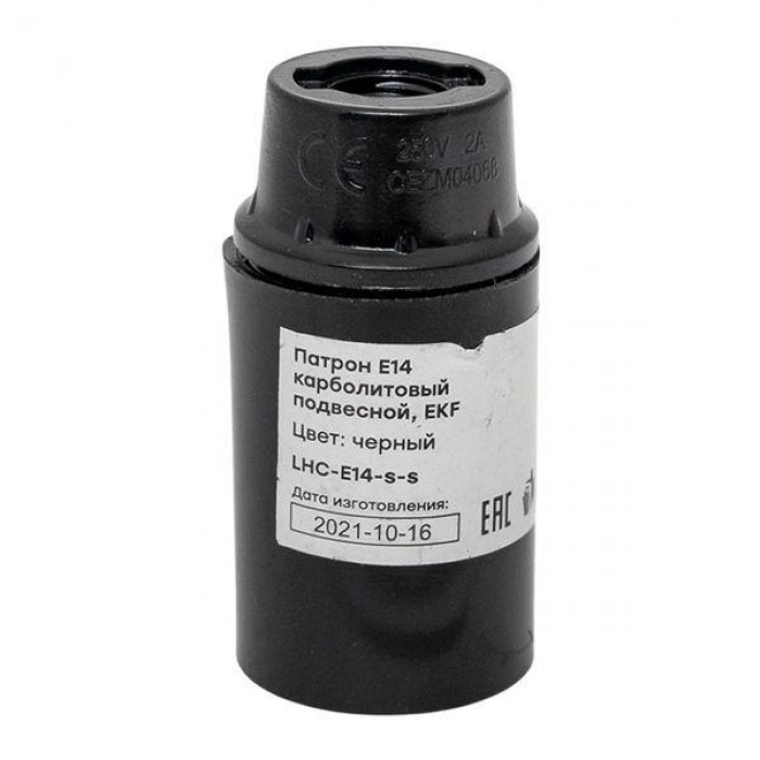 Патрон E14 карболитовый подвесной черн. EKF LHC-E14-s-s